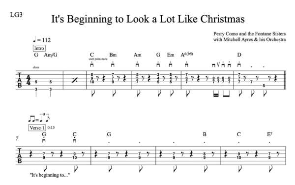 Lead Guitar Tablature for “It’s Beginning to Look a Lot Like Christmas” by Perry Como