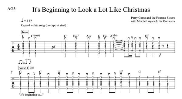 Strum Guitar Tablature for “It’s Beginning to Look a Lot Like Christmas