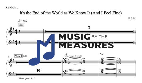 Keyboard Sheet Music for “It’s the End of the World as We Know It (And I Feel Fine)” by R.E.M.