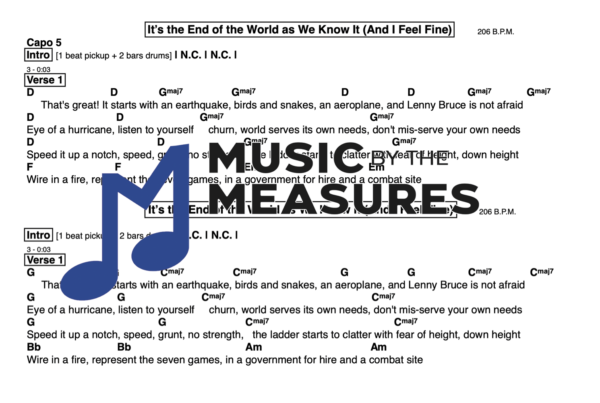Lead Sheet for “It’s the End of the World as We Know It (And I Feel Fine)” by R.E.M.