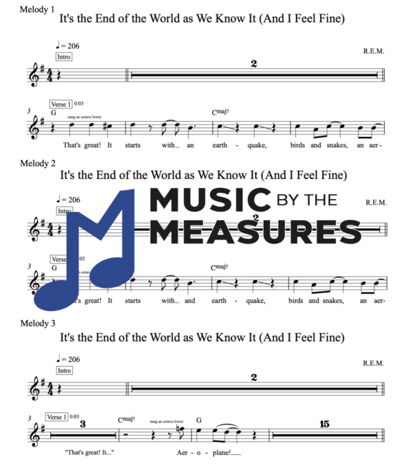 Melody Sheet Music for “It’s the End of the World as We Know It (And I Feel Fine)” by R.E.M.