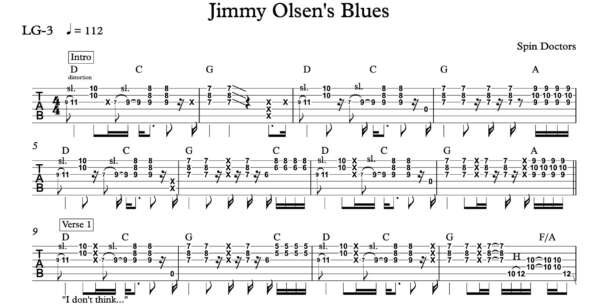 Lead Guitar Tablature for “Jimmy Olsen’s Blues” by Spin Doctors