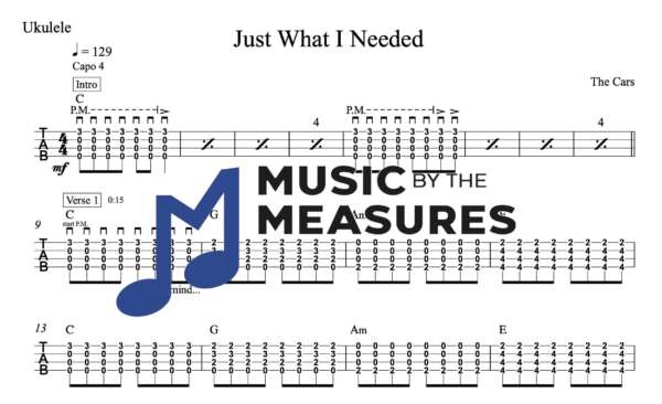 Ukulele Tablature for “Just What I Needed” by The Cars