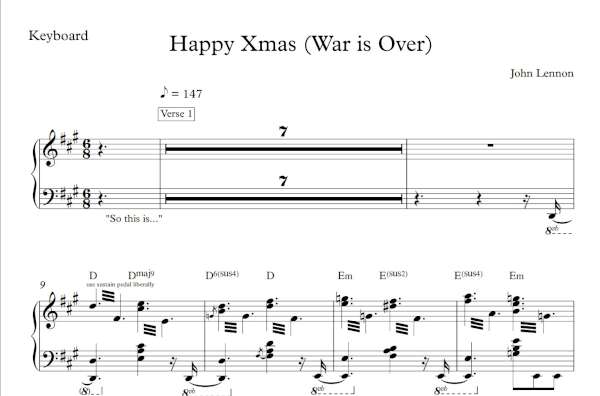 Keyboard Sheet Music for “Happy Xmas (War is Over)” by John Lennon.