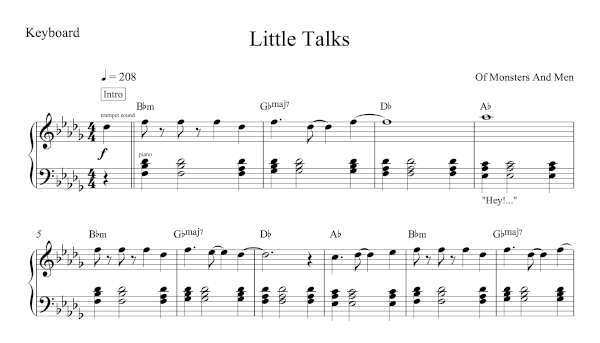 Keyboard Sheet Music for “Little Talks” by Of Monsters and Men.