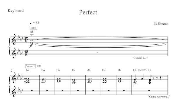 Keyboard Sheet Music for “Perfect” by Ed Sheeran.