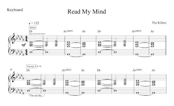 Keyboard Sheet Music for “Read My Mind” by The Killers.