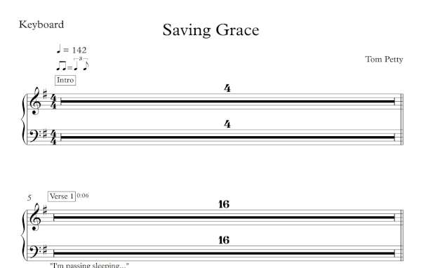 Keyboard Sheet Music for “Saving Grace” by Tom Petty.