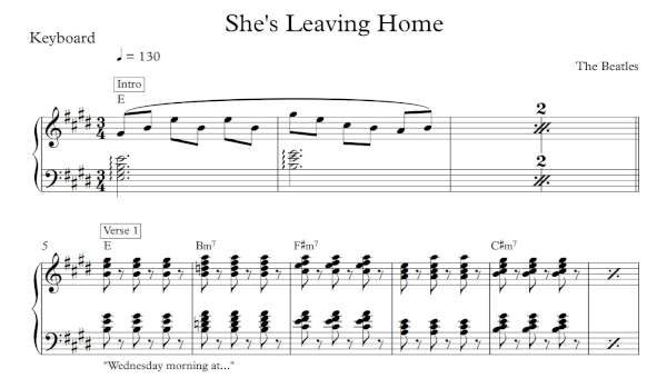 Keyboard Sheet Music for “She’s Leaving Home” by The Beatles.