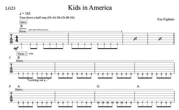 Lead Guitar Tablature for “Kids in America” by Foo Fighters