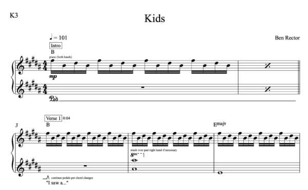 Keyboard Sheet Music for “Kids” by Ben Rector