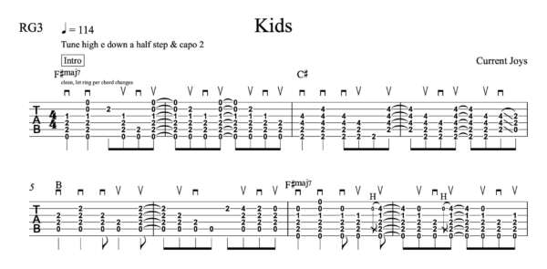 Rhythm Guitar Tablature for “Kids” by Current Joys