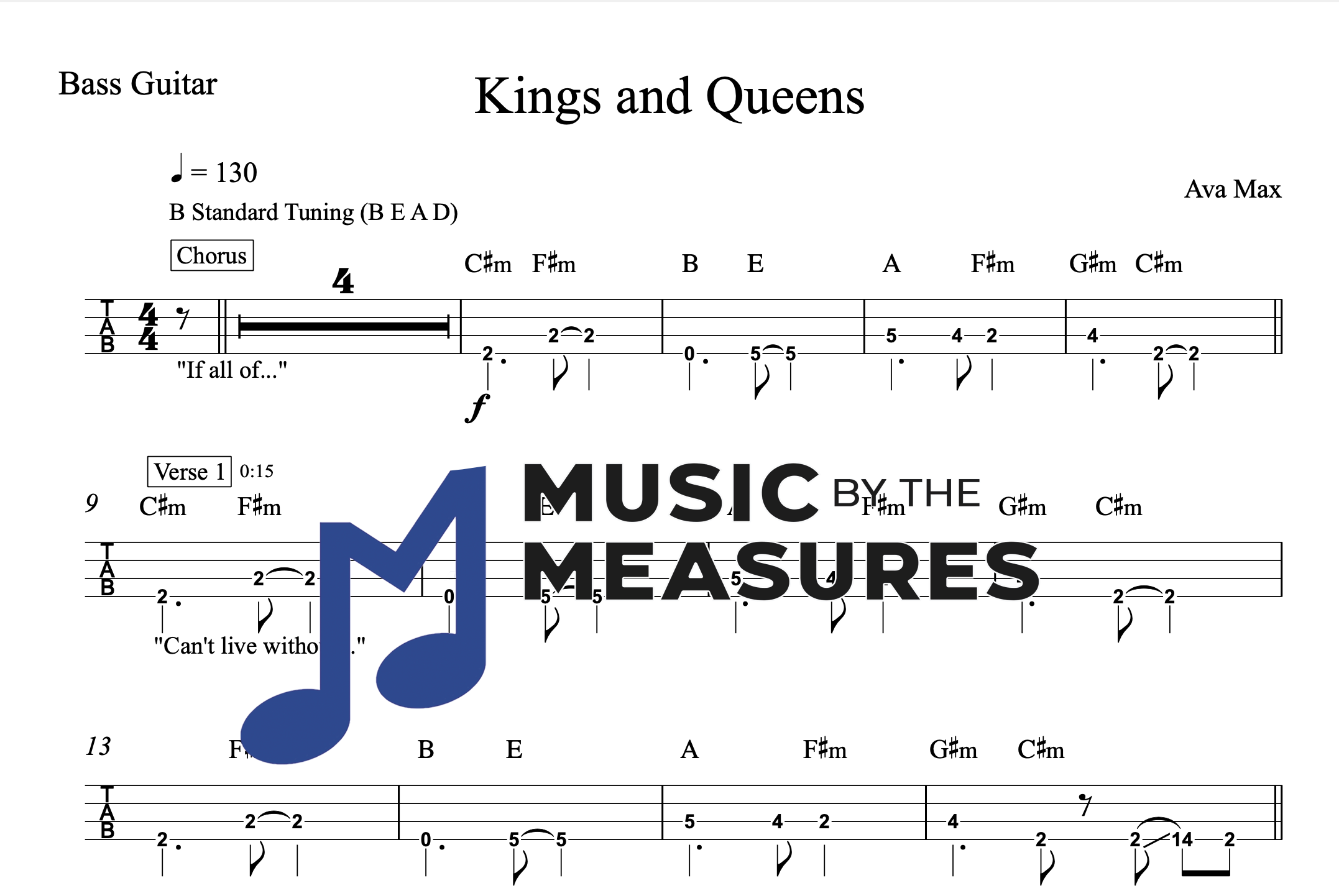 Bass Guitar Tablature for “Kings and Queens” by Ava Max