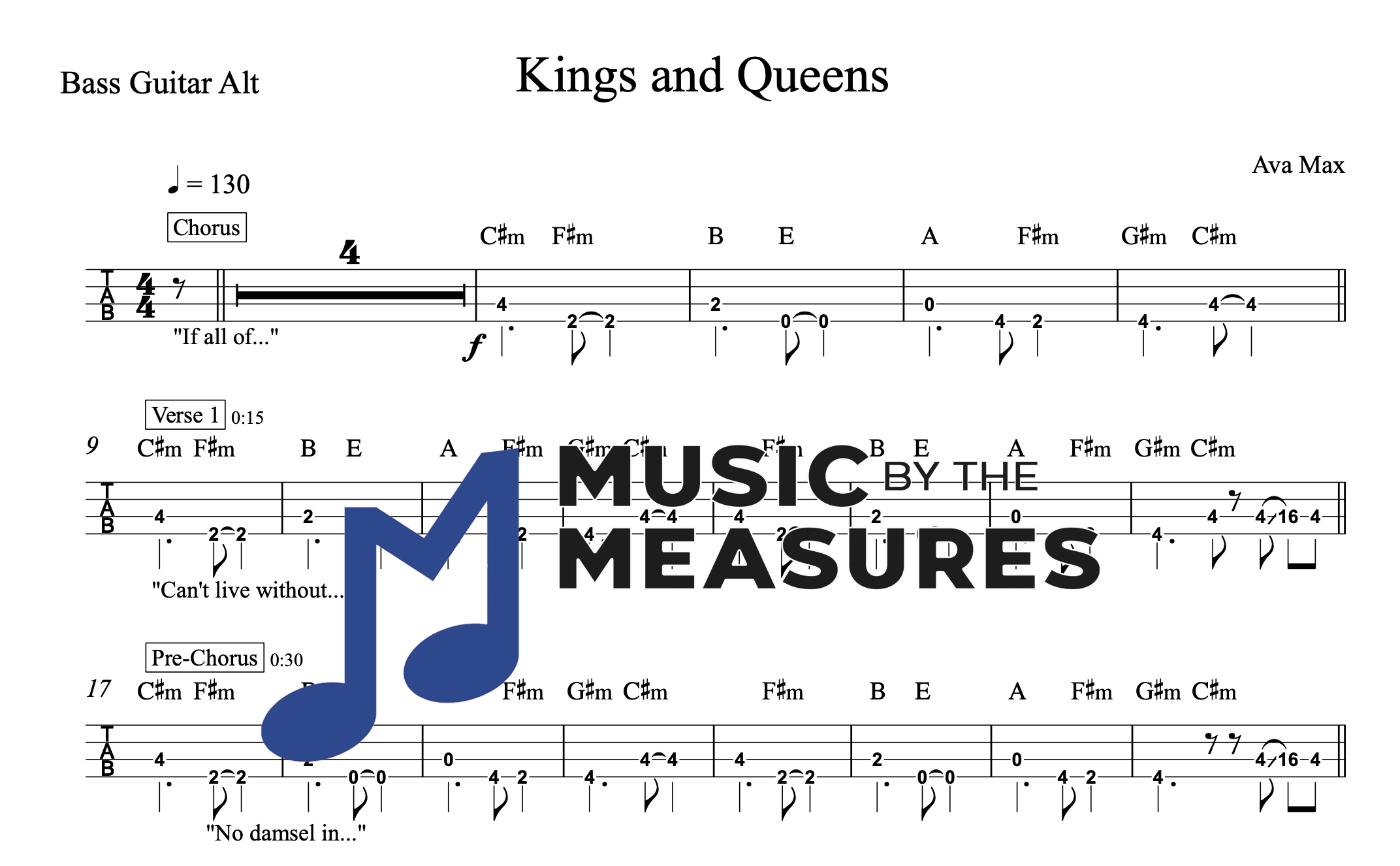 Bass Guitar Tablature for “Kings and Queens” by Ava Max