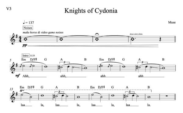 Melody Sheet Music for “Knights of Cydonia” by Muse