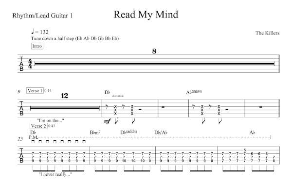 Lead Guitar 1 Tablature for “Read My Mind” by The Killers.