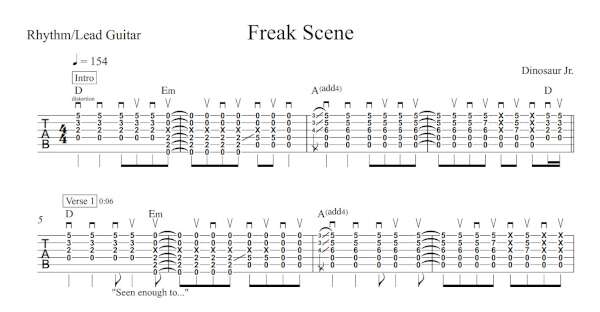 Lead Guitar Tablature for “Freak Scene” by Dinosaur Jr.