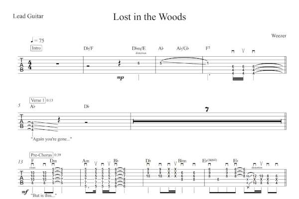 Lead Guitar Tablature for “Lost in the Woods” by Weezer.