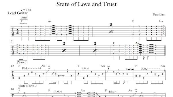 Lead Guitar Tablature for “State of Love and Trust” by Pearl Jam.