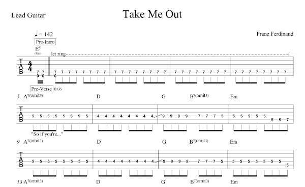 Lead Guitar Tablature for “Take Me Out” by Franz Ferdinand.