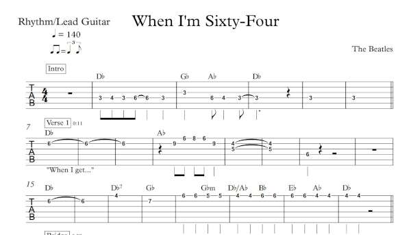 Lead Guitar Tablature for “When I’m Sixty-Four” by The Beatles.