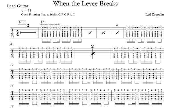 Lead Guitar Tablature for “When the Levee Breaks” by Led Zeppelin.