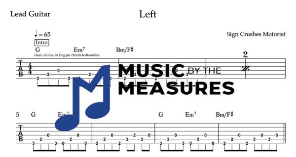 Lead Guitar Tablature for “Left” by Sign Crushes Motorist
