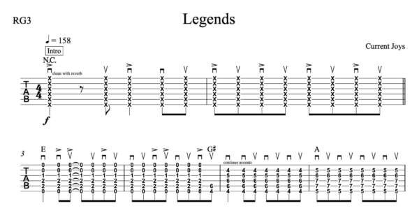 Rhythm Guitar Tablature for “Legends” by Current Joys
