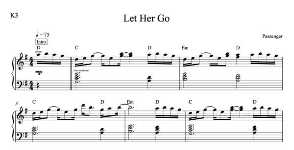 Keyboard Sheet Music for “Let Her Go” by Passenger