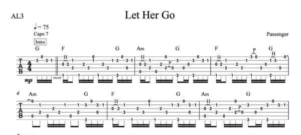 Lead Guitar Tablature for “Let Her Go” by Passenger