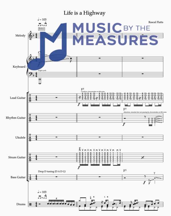 Full Band Sheet Music for “Life is a Highway” by Rascal Flatts