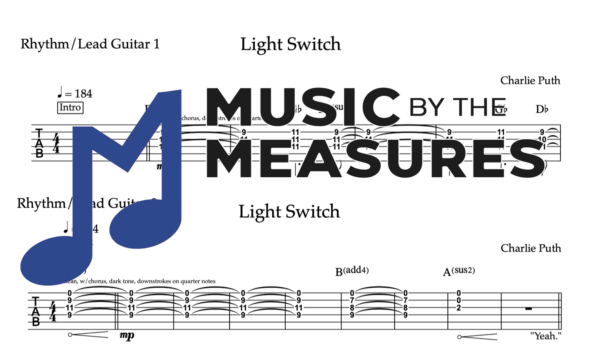 Rhythm Guitar Tablature for “Light Switch” by Charlie Puth