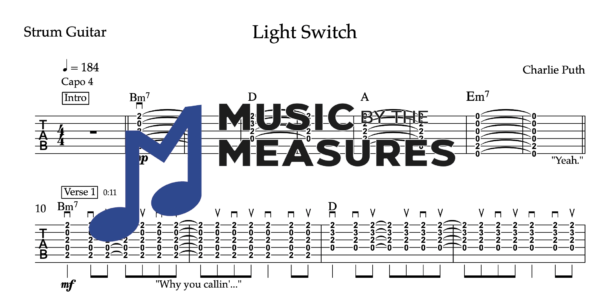 Strum Guitar Tablature for “Light Switch” by Charlie Puth