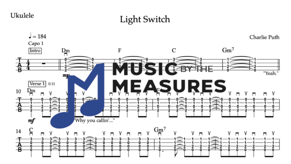 Ukulele Tablature for “Light Switch” by Charlie Puth
