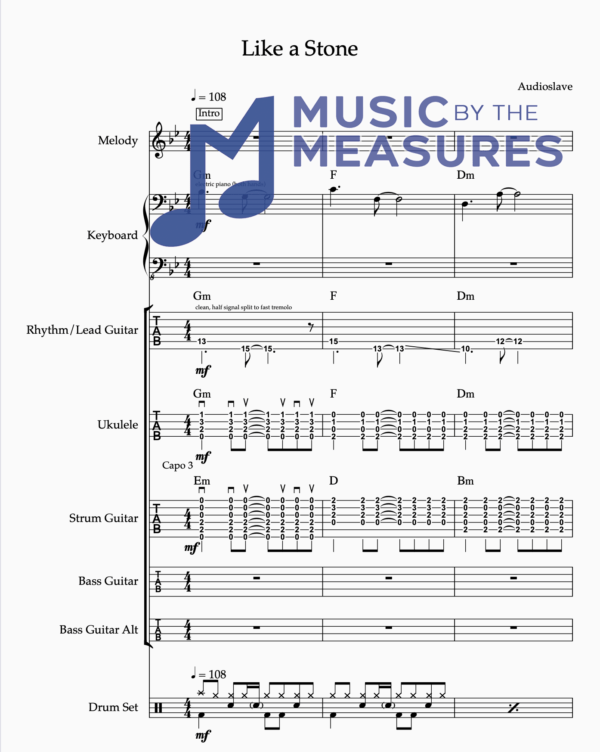 Full Band Sheet Music for “Like a Stone” by Audioslave
