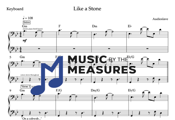 Keyboard Sheet Music for “Like a Stone” by Audioslave