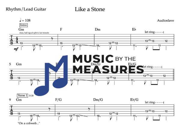 Lead Guitar Tablature for “Like a Stone” by Audioslave