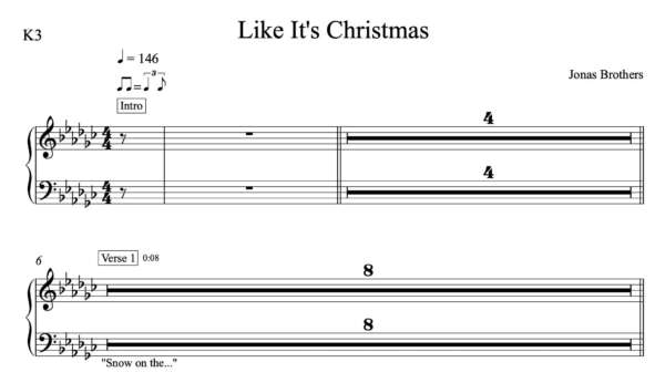 Keyboard Sheet Music for “Like It’s Christmas” by Jonas Brothers
