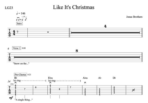 Rhythm Guitar Tablature for “Like It’s Christmas” by Jonas Brothers
