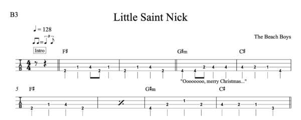 Bass Guitar Tablature for “Little Saint Nick” by The Beach Boys
