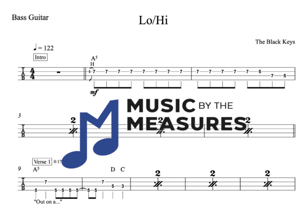 Bass Guitar Tablature for “Lo/Hi” by The Black Keys