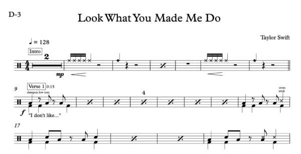Drum Sheet Music for “Look What You Made Me Do” by Taylor Swift