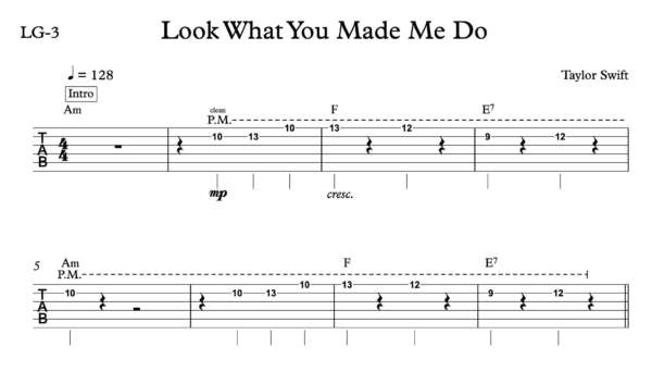 Lead Guitar Tablature for “Look What You Made Me Do” by Taylor Swift