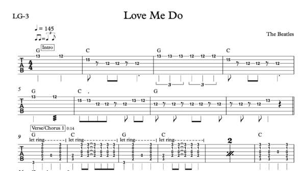 Lead Guitar Tablature for “Love Me Do” by The Beatles