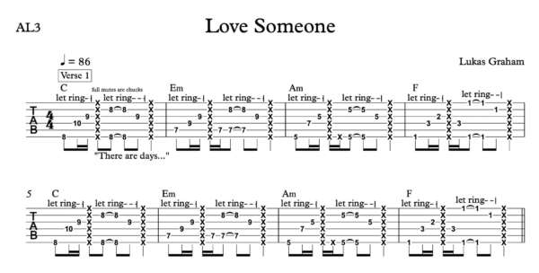 Lead Guitar Tablature for “Love Someone” by Lukas Graham