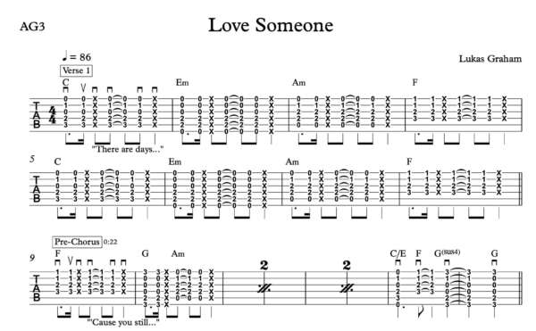 Strum Guitar Tablature for “Love Someone” by Lukas Graham