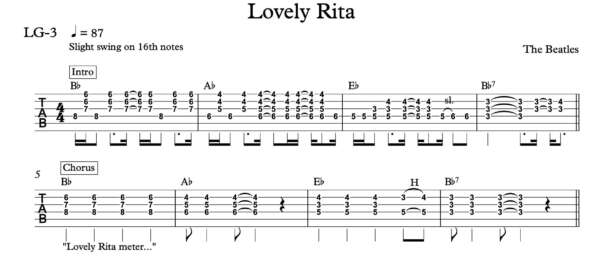 Lead Guitar Tablature for “Lovely Rita” by The Beatles