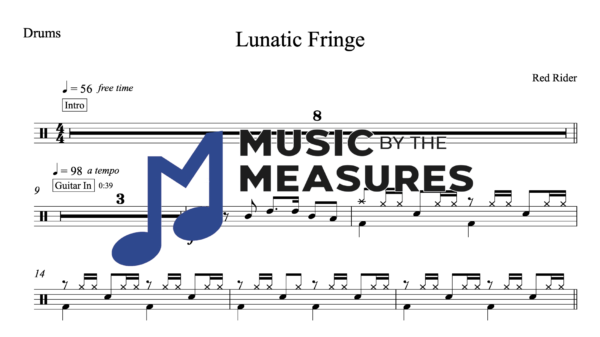 Drum Sheet Music for “Lunatic Fringe” by Red Rider