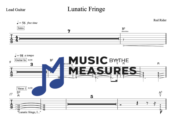 Lead Guitar Tablature for “Lunatic Fringe” by Red Rider