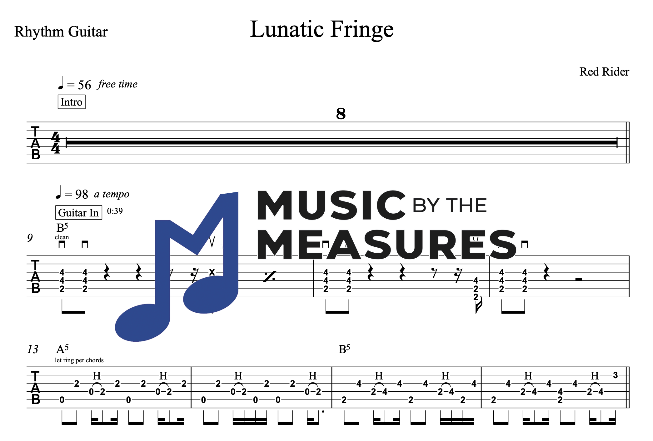Rhythm Guitar Tablature for “Lunatic Fringe” by Red Rider